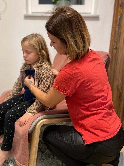 Im Alter zw. 0 und ca. 5/6 Jahren kann kein Muskeltest gemacht werden, daher findet die Balance über Surrogat statt. Im Idealfall an der Bezugsperson, oder über mich.